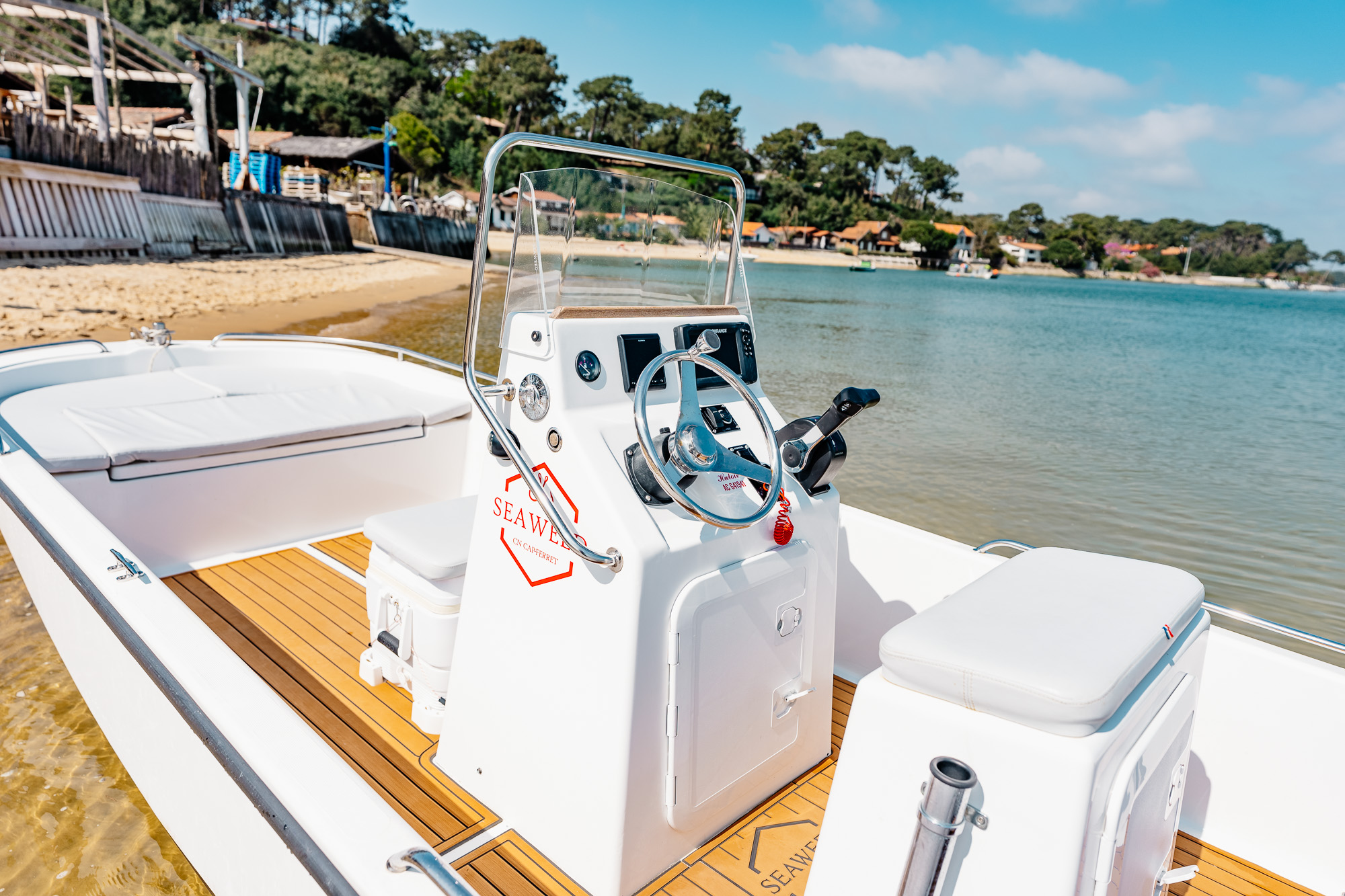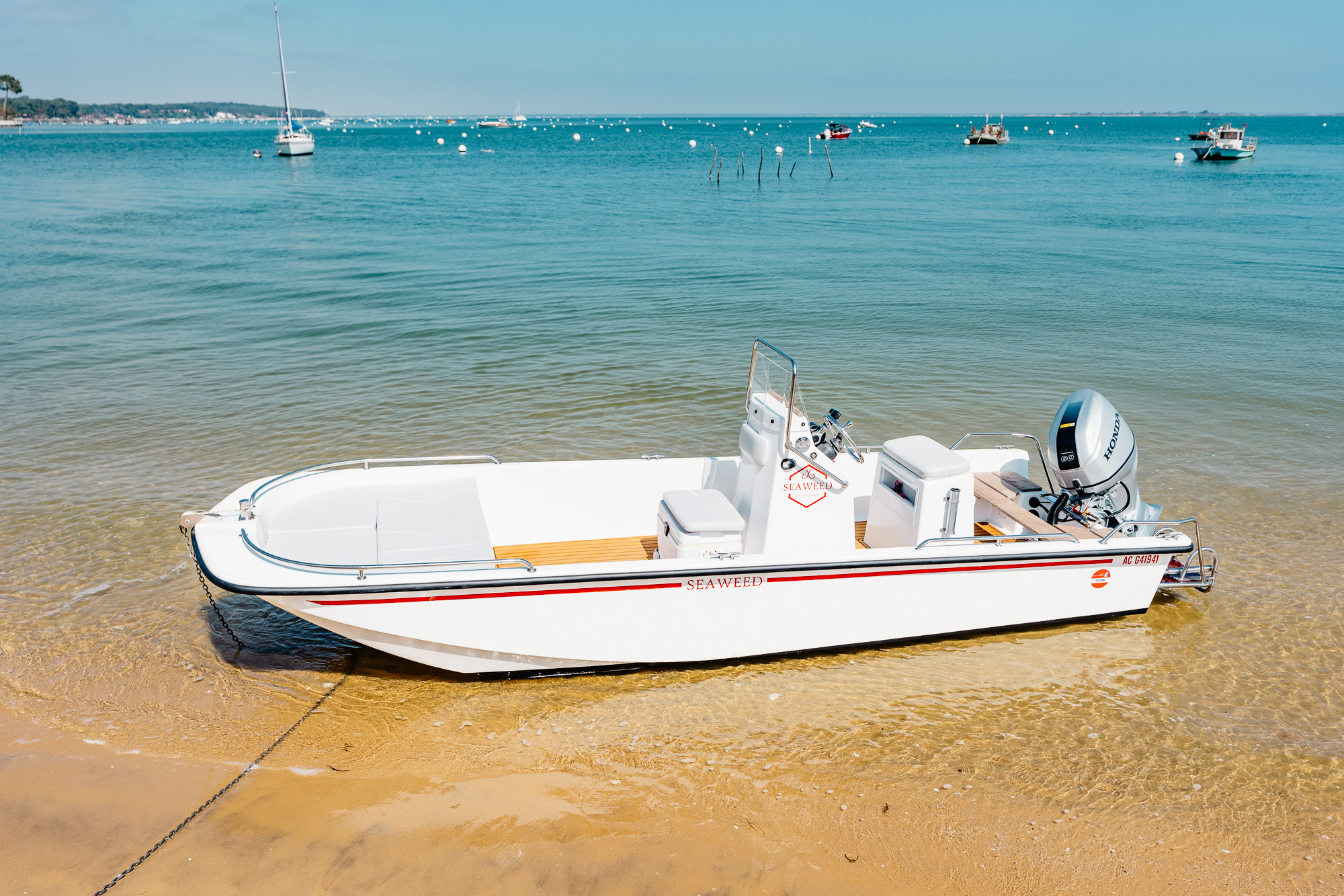 Envie de liberté en toute autonomie ? Louez, notre bateau Huloli de 5,80 m (permis requis), et partez explorer le Bassin à votre rythme.