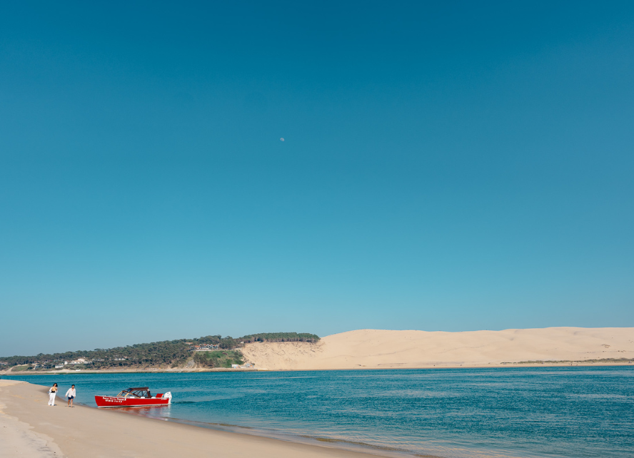 Embarquement à Arcachon, au Cap-Ferret ou ailleurs pour admirer l’île aux oiseaux et contempler les célèbres cabanes Tchanquées, emblème du bassin d’Arcachon sur